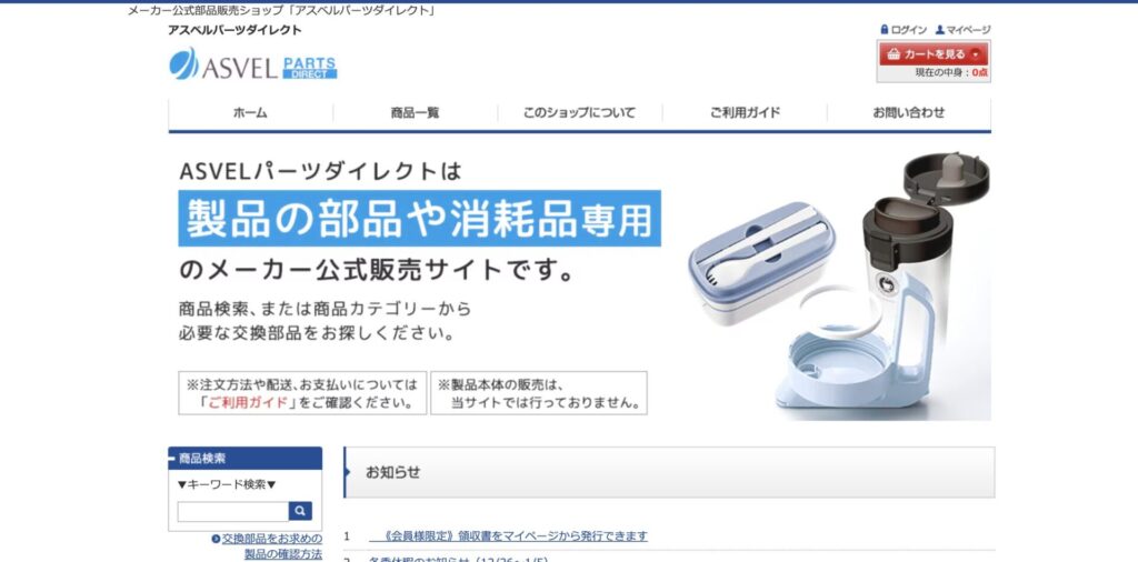 ASVELパーツダイレクトという製品の部品や消耗品を専用にあつかう