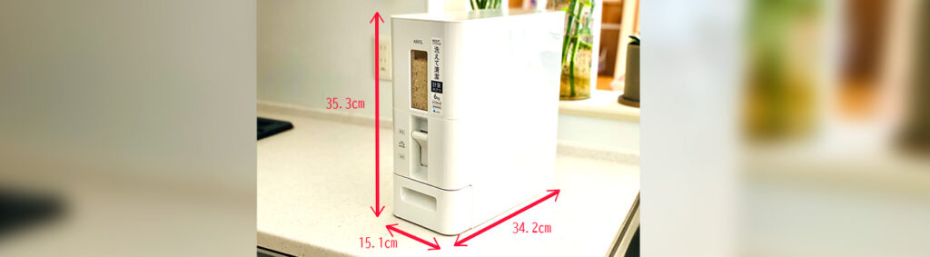 収納棚の奥行きが40cmなのに、手持ちのライスストッカーの奥行きが42cm..