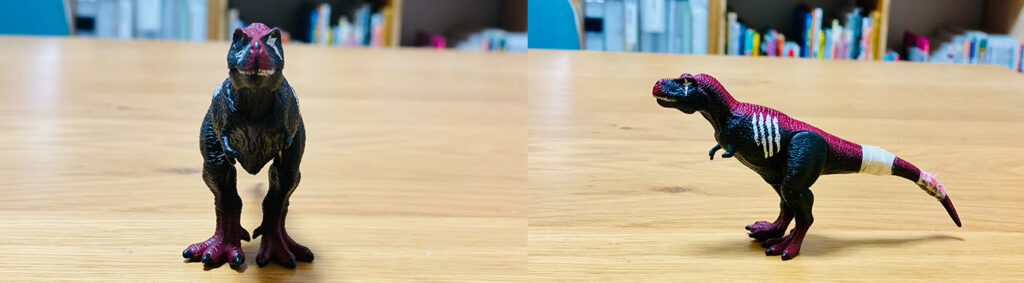 ティラノサウルスのアニアをまっさきに持ってきて、にらめっこ!