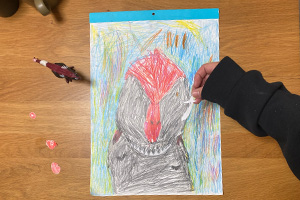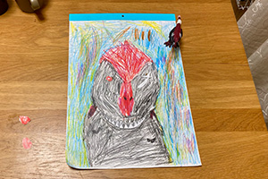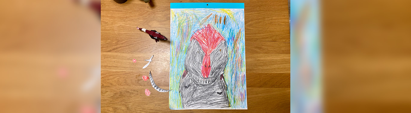 描きたいものをよく観察。ティラノサウルスとにらめっこ