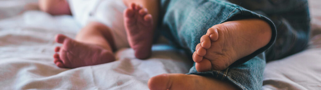 ママは赤ちゃんを抱っこしていて、手をつなぎたいのにできない。