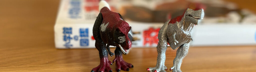 読む間、息子はティラノサウルスのフィギュアをずっと触っているので、