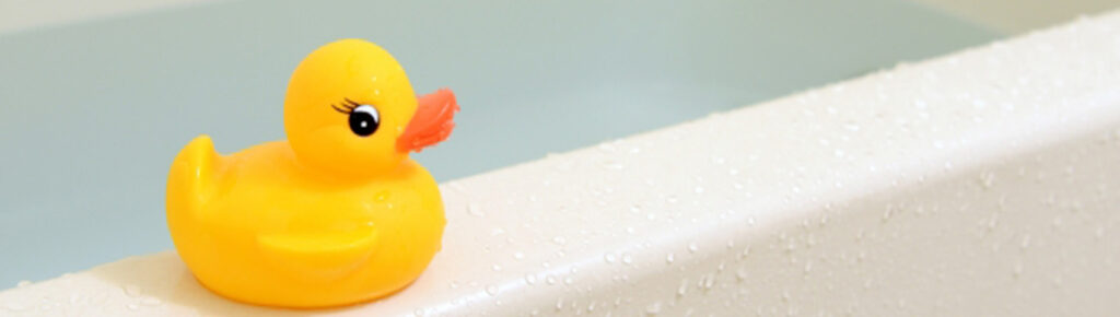 まこちゃんはアヒルのプッカとお風呂に入ります。