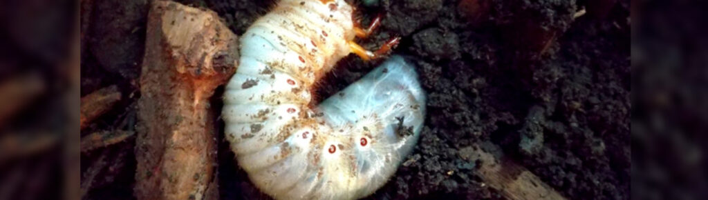 こうした場所を掘ると、白くて大きな幼虫に出会えることがあります。