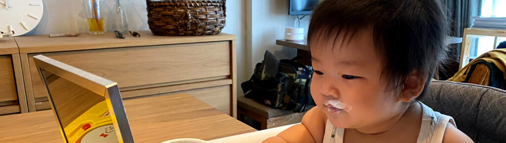 当時の息子は、食事中に口のまわりを拭かれるのが大嫌い。
