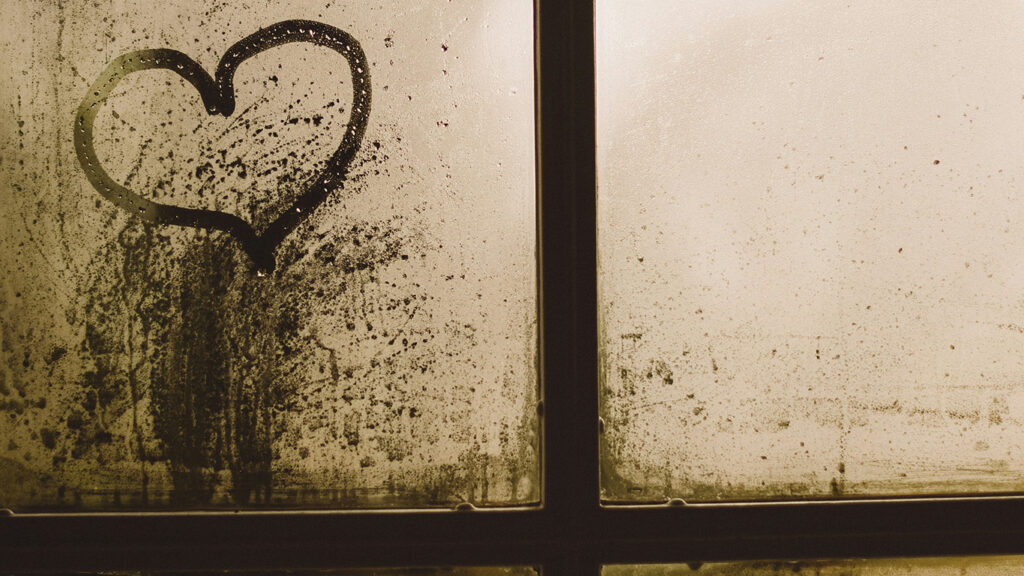 曇った窓に描かれる
