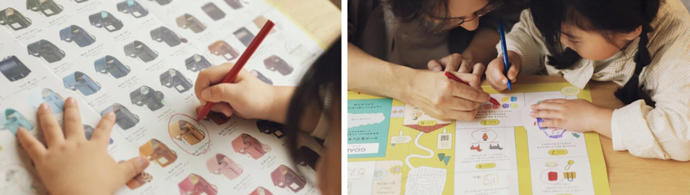 • カタログには、色や質感を親子で選べる工夫が詰まっています。